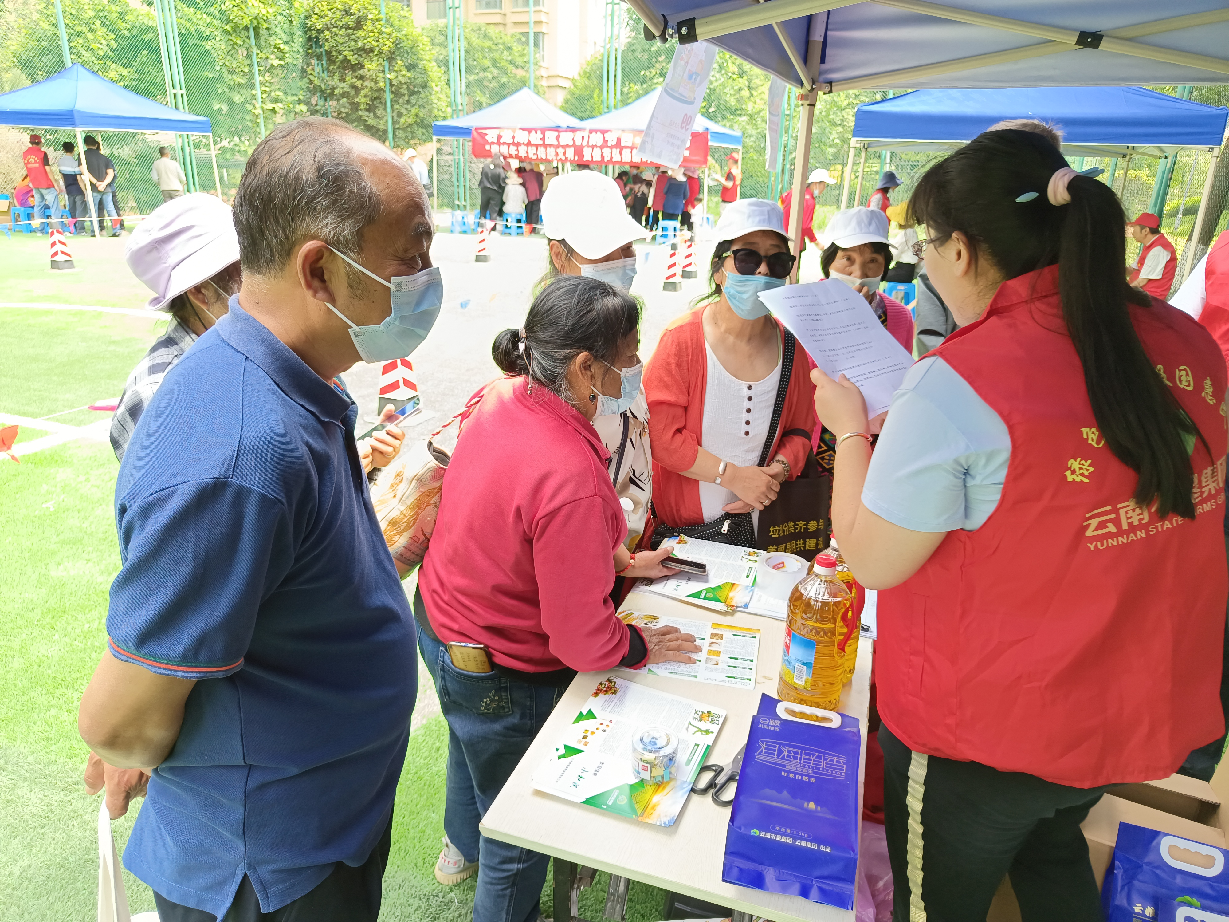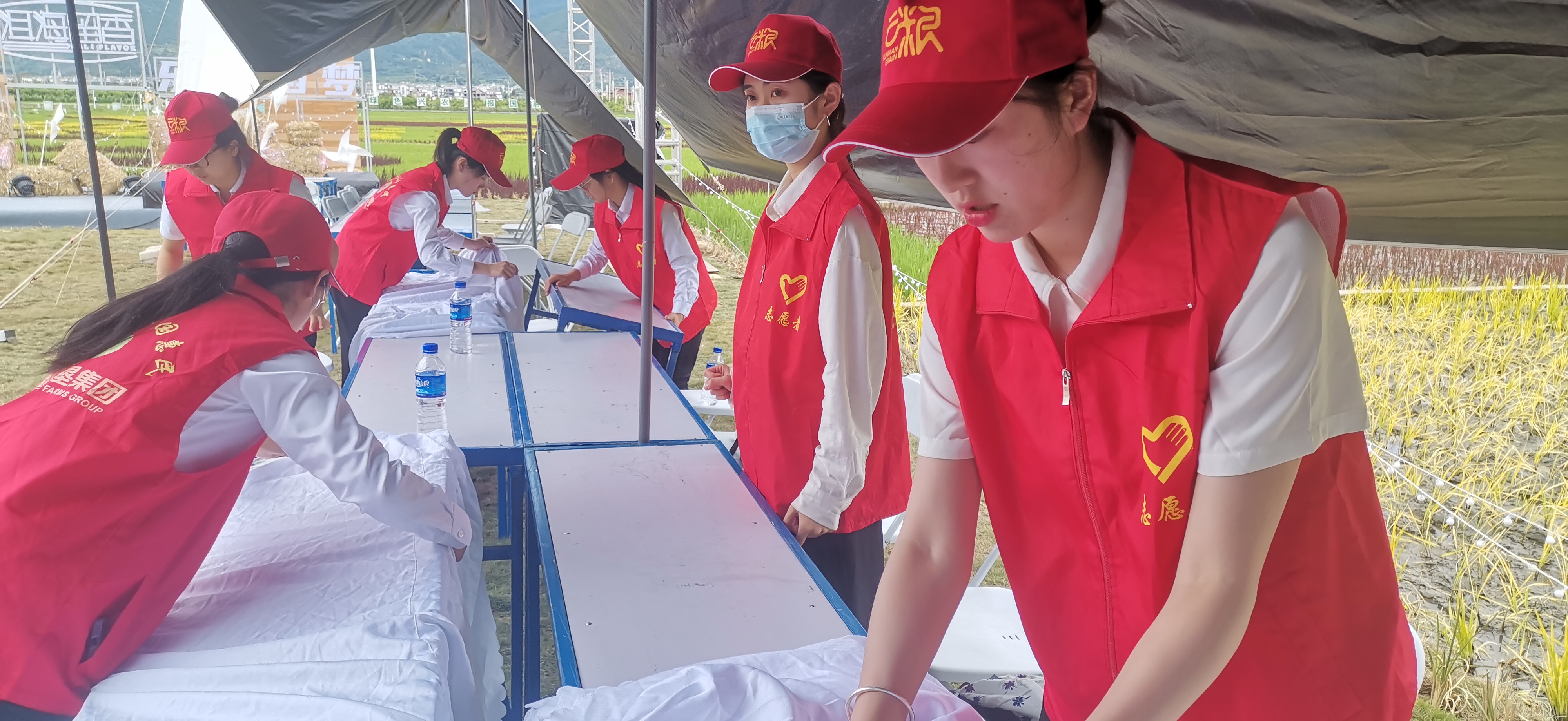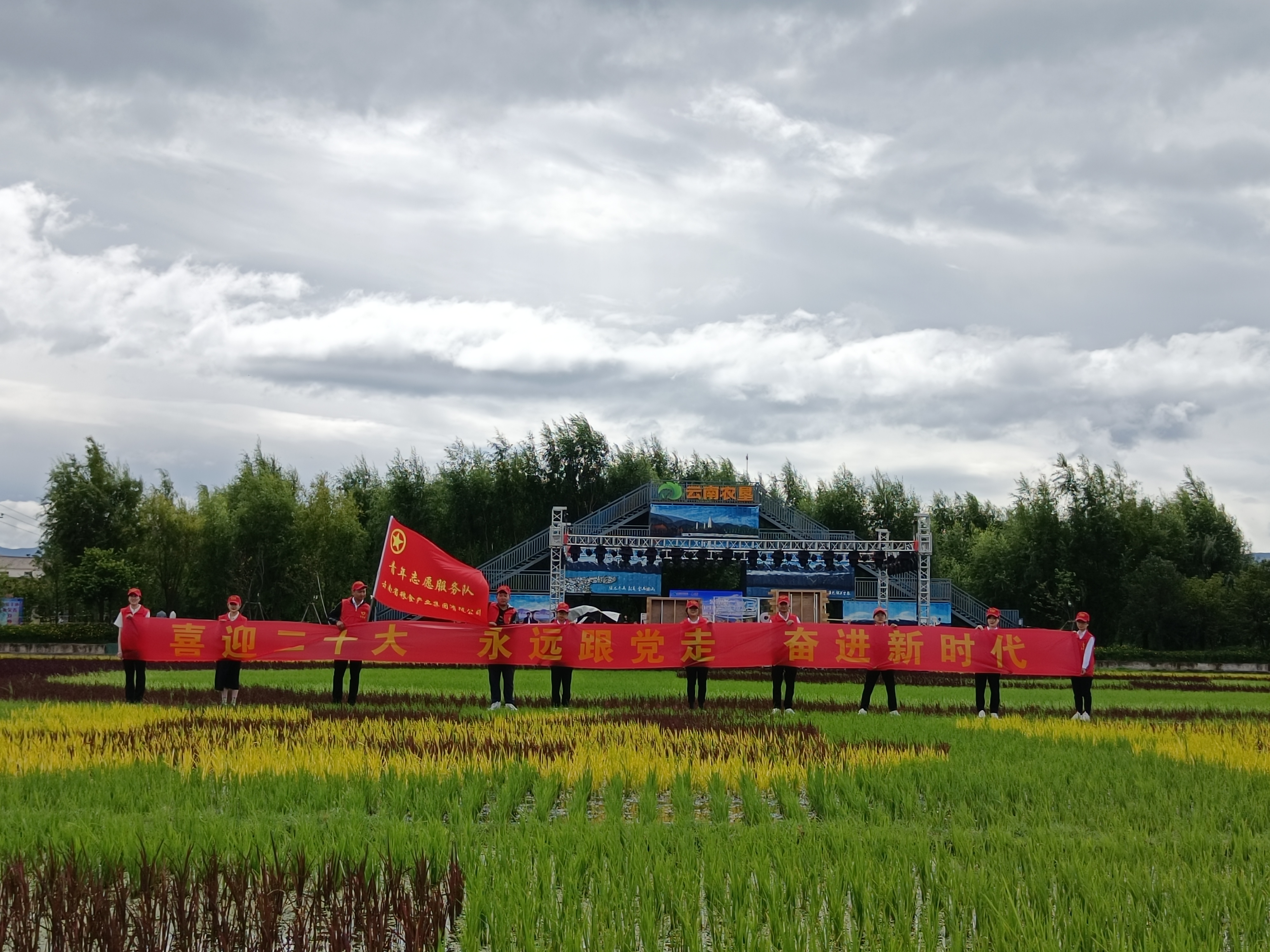 青年志愿服务队不畏酷暑,不怕苦、不怕累、不怕脏,洗碗、端菜、贴牌、装袋、迎宾、引导、签到、讲解、宣传、车辆引导、疫情防控、物资搬运、卫生清洁、会场布置、气氛营造……人人忙得不亦乐乎。团员青年始终活跃在工作最需要的地方,以责任担当打造青春名片,用实际行动践行“请党放心,强国有我,我是云粮青年”的青春誓言,用满腔热血贡献青春力量,鲜红的团旗始终在基层一线高高飘扬!
