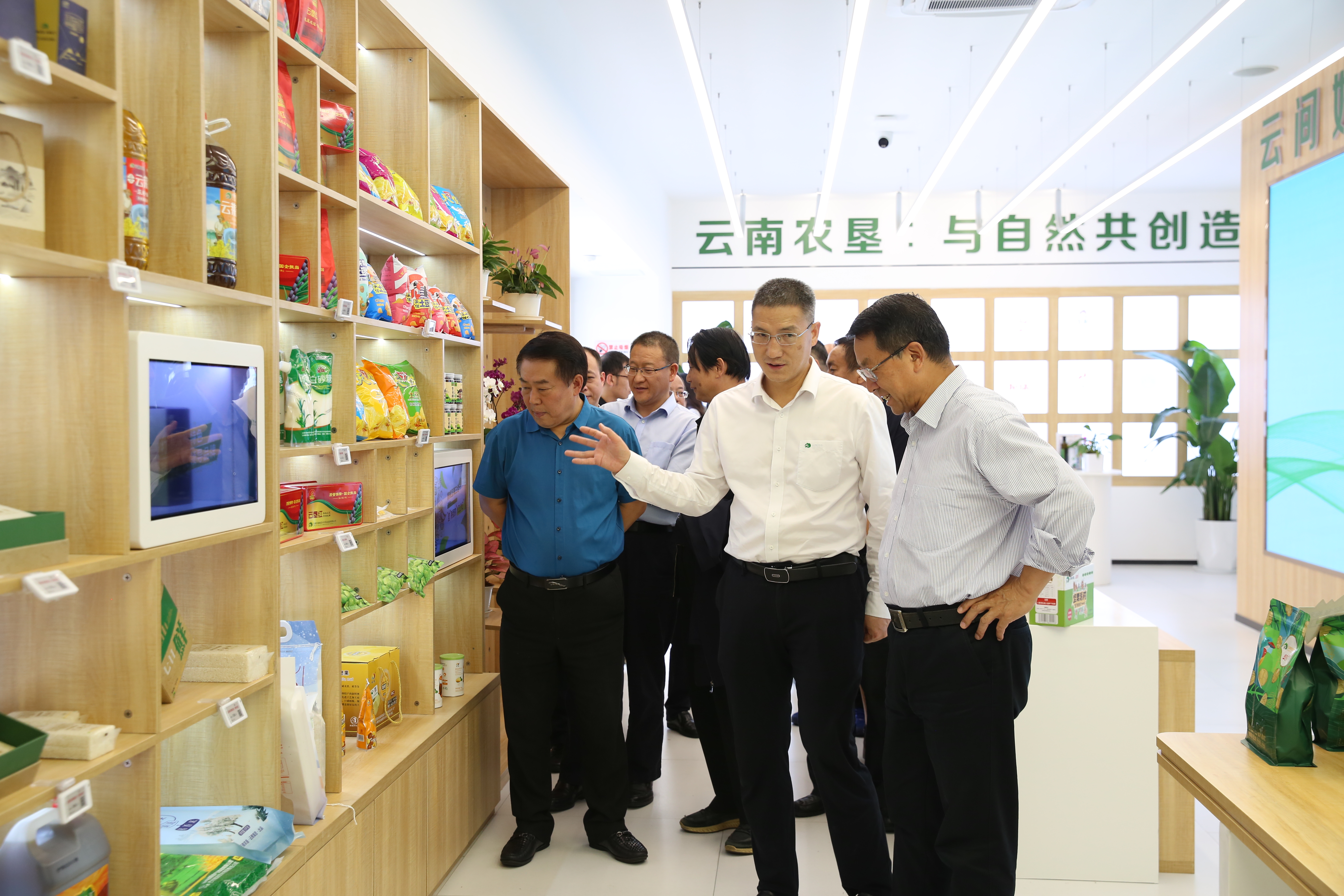 张福锁一行还参观了集团“绿色食品数字体验中心”和“云茶空间”旗舰店,品鉴了“云啡”咖啡和“八角亭”茶叶,对集团的绿色食品赞誉有加。